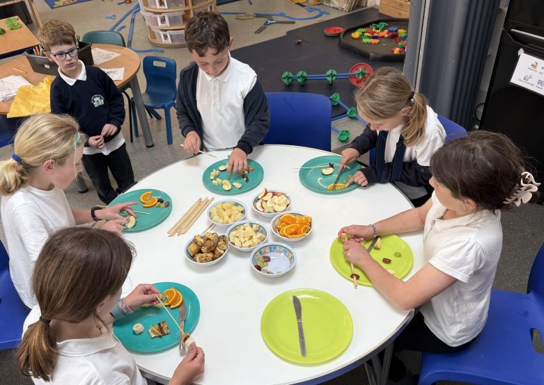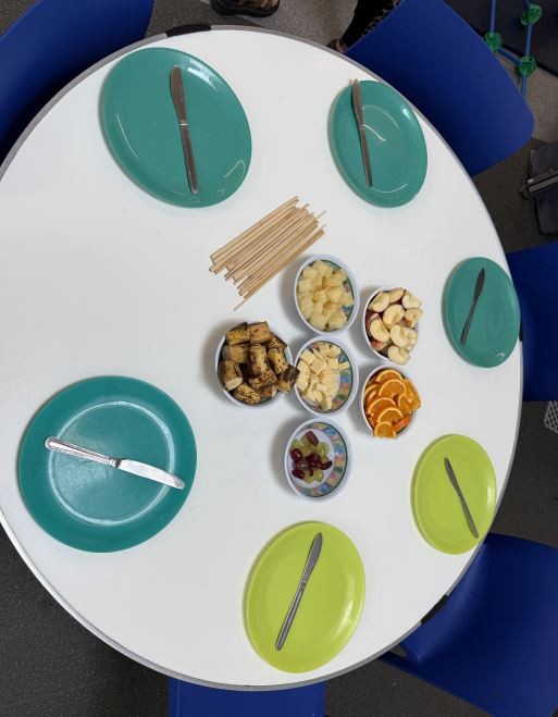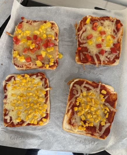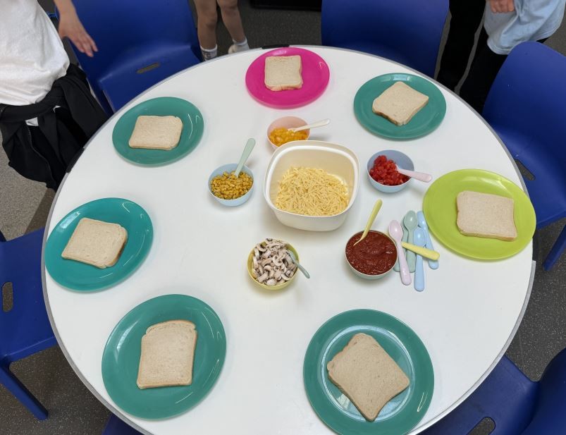 The Children built their own colourful skewers using fresh fruits, they also used sliced bread, tomato paste, cheese, fun toppings, to create their own mini pizza masterpiece.