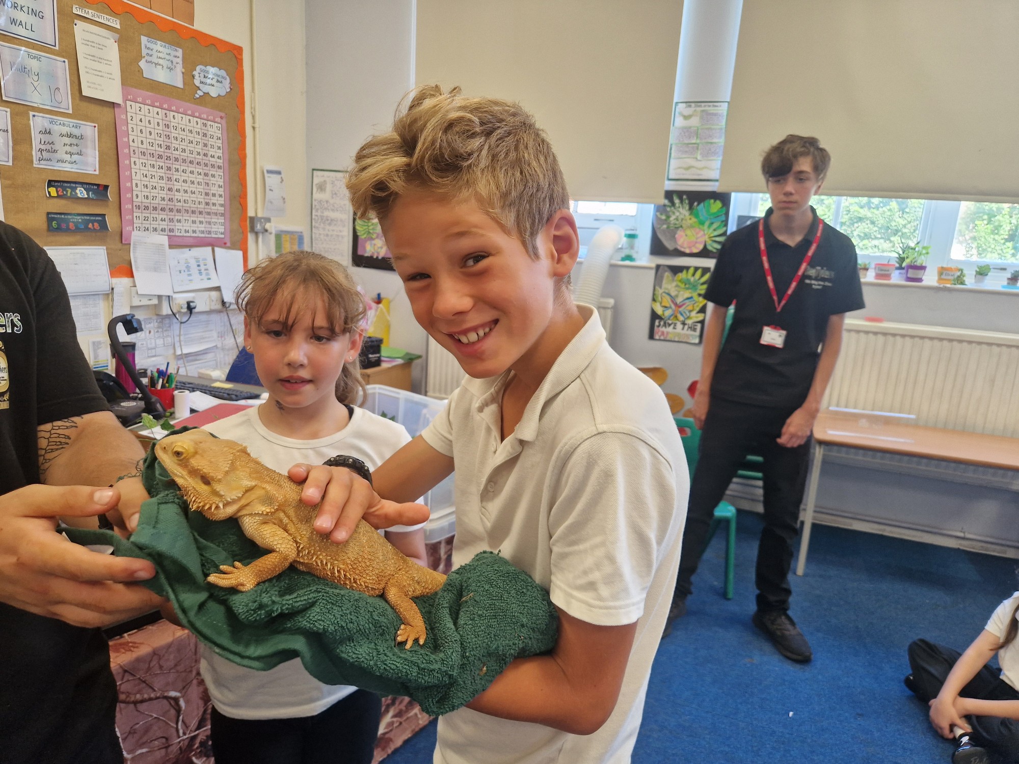 Last week Year 4 were visited by Reptylers! We got to hold lots of animals that live in the rainforest including 'Monty' - a 14ft Burmese snake.