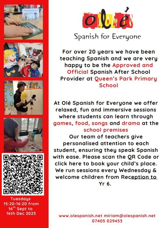 A huge thank you goes to Mrs Gale and all of the dedicated staff, whose passion and hard work continue to make Queens Park a vibrant, inspiring, and nurturing place for our children and the wider community.